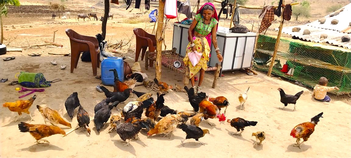Jamnabai Tejya Bhuria, an elderly couple living in Dalpura village of Petlawad block in Jhabua district, have set an inspiring example of self-reliance despite facing tough circumstances. 67-year-old Jamnabai lives with her husband Tejya, earning their livelihood through poultry and goat farming.